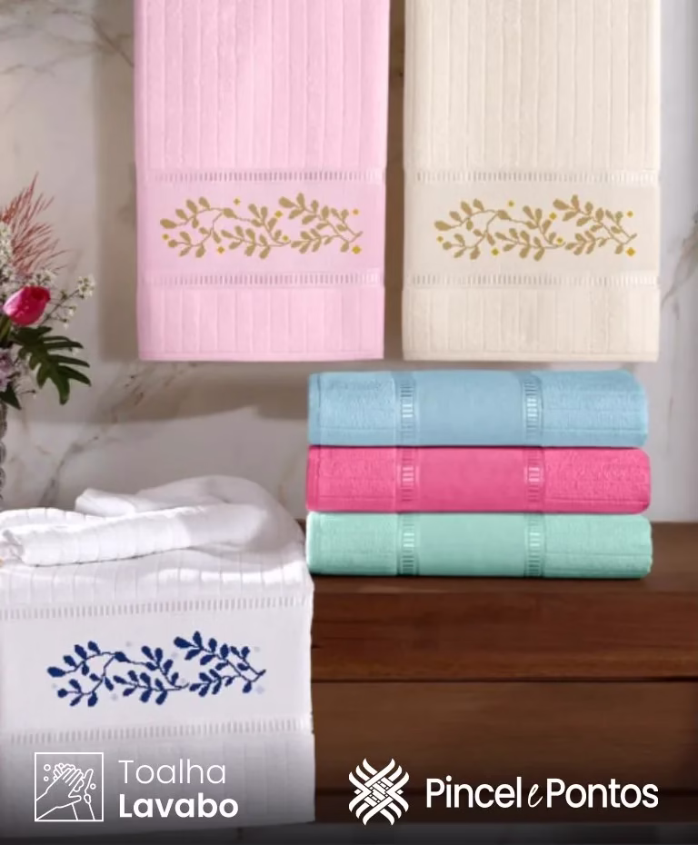 Confeccionada em 100% algodão (exceto nos detalhes decorativos), essa toalha se destaca pela sua barra em alto e baixo relevo com efeito canelado, desenvolvida especialmente para bordado. Essa característica permite criar lembranças únicas, kits personalizados ou simplesmente agregar um charme artesanal à decoração.